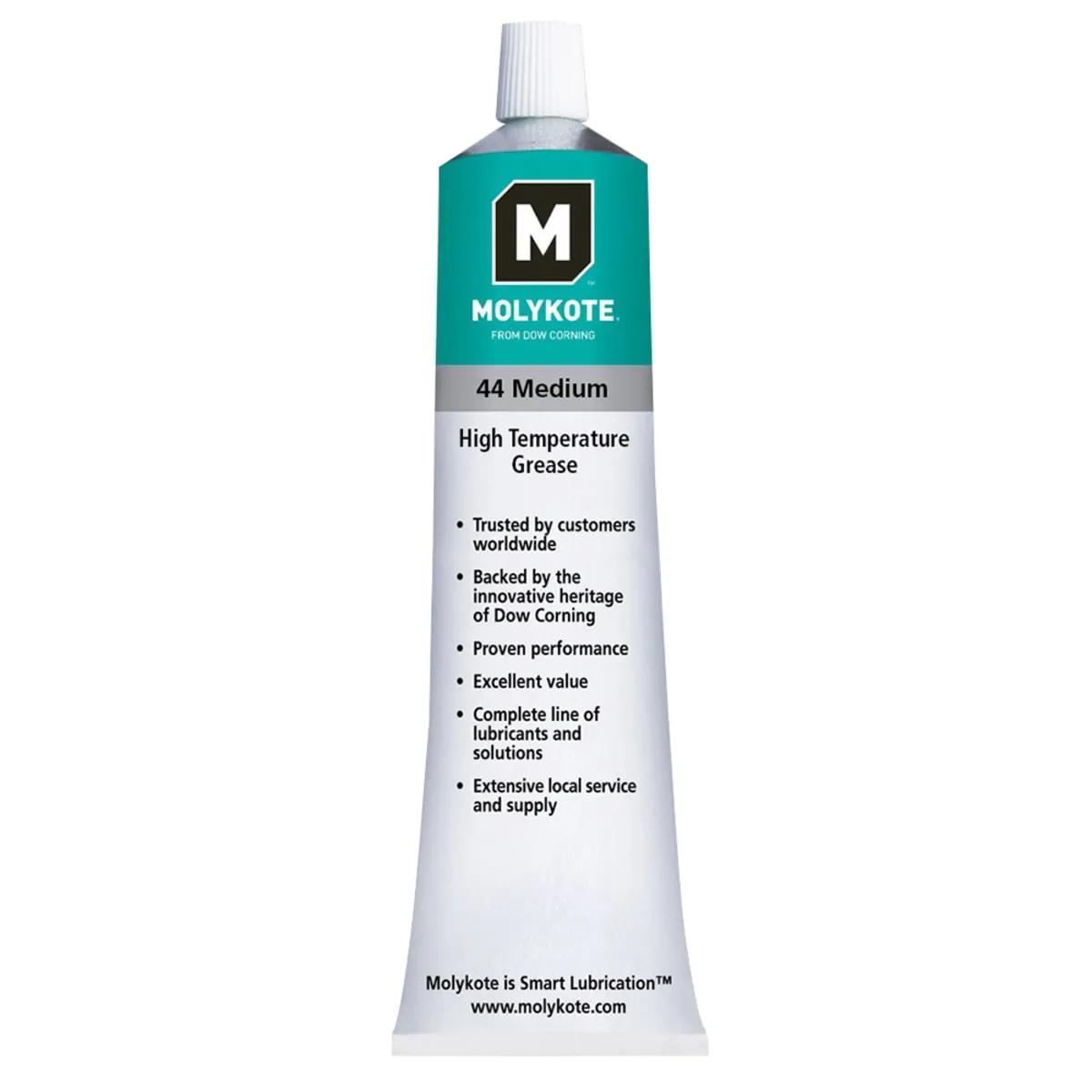 Dow Corning Molykote 44 medium - high temperature bearing grease off-white is a thickened silicone oil that is used for lubricating plastics, rubber, and anti friction bearings. It is recommended for aircraft engines, conveyor systems, driers, oven fans, and textile slashers. - It provides good shear stability, wide service temperature range, inertness, and resistance to corrosion, moisture, and oxidation. Resistance to oxidation, moisture and corrosive atmospheres.
