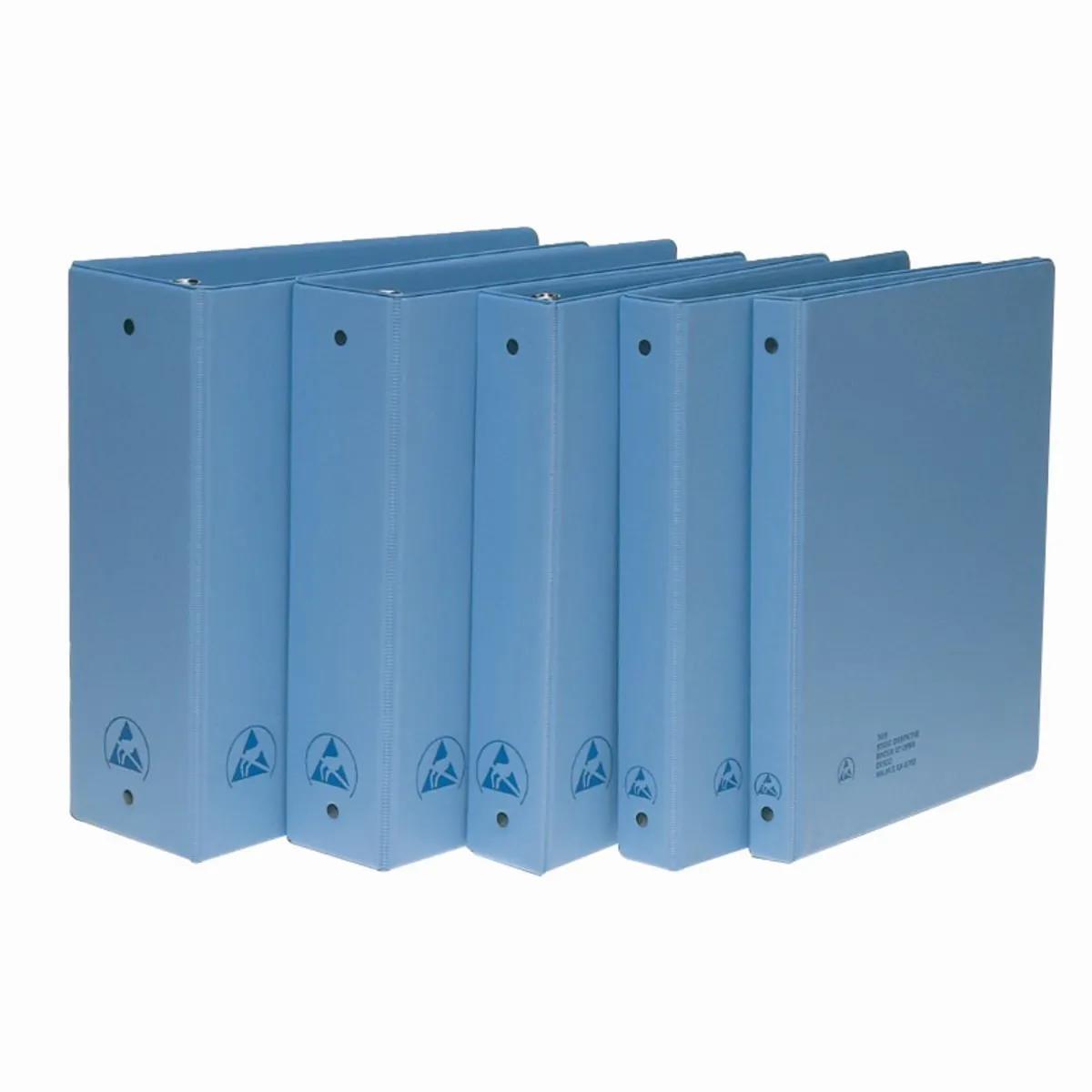 Static Dissipative Binder made from a static dissipative vinyl material, these binders are ideal for storing documents in ESD sensitive areas. Electrostatic charges are removed to ground when grounded. - Ring constructed of nickel plated steel, ring size is the inside diameter of the ring and indicates the capacity of the binder to hold material.