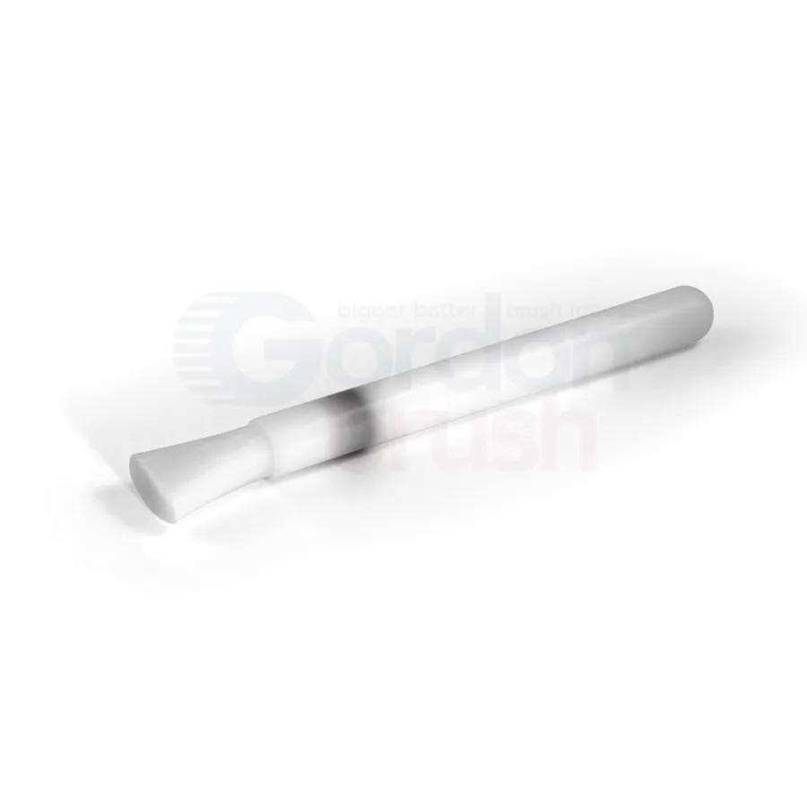 This applicator brush is pencil-shaped with 0.008" Nylon bristle and an acetal plastic handle. This high-quality brush has a 1" trim, a brush face diameter of 1/2" and a handle length of 4-1/2" x 1/2" wide. For use in situations where you need a round brush to clean fine areas. Works well for applying fluids. Made with FDA and RoHS compliant materials