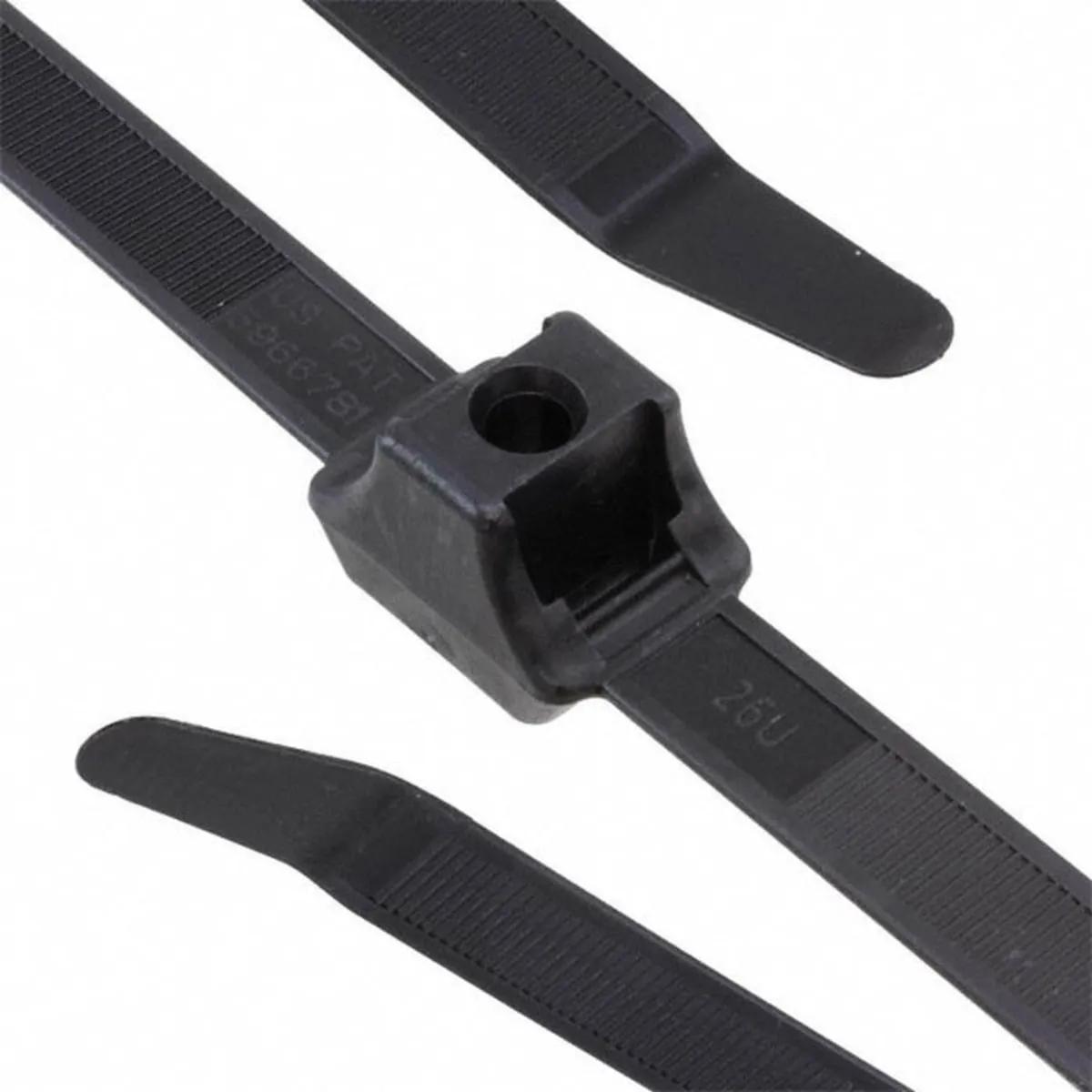HellermannTyton's dual clamp ties are designed to provide parallel separation between hoses, wires, cables and tubing, protecting them from abrasion. The unique one-piece design features the dual head centered on the strap. - These ties have an optional mounting hole for securing bundles along the chassis of tracks, trailers and heavy duty equipment.