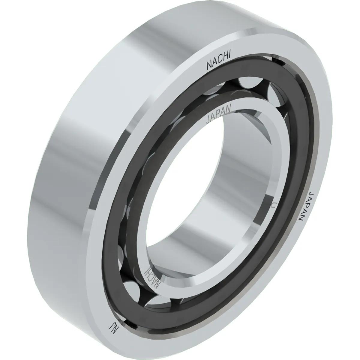 Cylindrical Roller Bearing – ‘NJ’ CONFIGURATION Cylindrical Roller Bearings utilize a modified cylindrical roller that provides line contact with the inner and outer ring raceways. They are suitable for high speeds and have a high radial load capacity. The rollers are guided by ribs on either the inner or outer rings. Depending upon the configuration, the bearings may or may not be able to accept any axial loading. The inner and outer rings are separable which may aid in assembly/disassembly of components. The ‘NJ’ Type bearings has shoulders on both sides of the outer ring and one shoulder on the inner ring. This allows the bearing to accept light axial loads in one direction. Some sizes may be available in a high capacity design (EG) that has larger diameter rollers and a polyamine cage. Stamped steel or machined brass (MY) cages are generally used. These bearings are most commonly used in gearboxes, rolling mills, crushers and pulverizers.