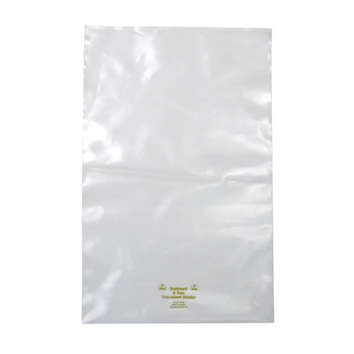 Desco's light weight sheet protector is made from a static dissipative polyester polyolefin material. The triboelectric charge generation of the material is negligible (tested per EIA-541) to make them safe for use around ESD susceptible items. - They are designed for top loading a standard sheet of paper. Non-stick, amine free, coextruded.