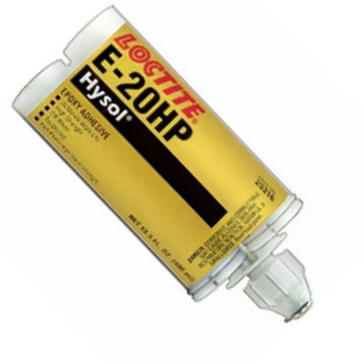 Loctite E-20HP is a toughened, medium-viscosity, industrial grade epoxy adhesive with a medium work life. Once mixed, the two-component epoxy cures at room temperature to form a tough, off-white, bondline that provides high peel resistance and high shear strengths.