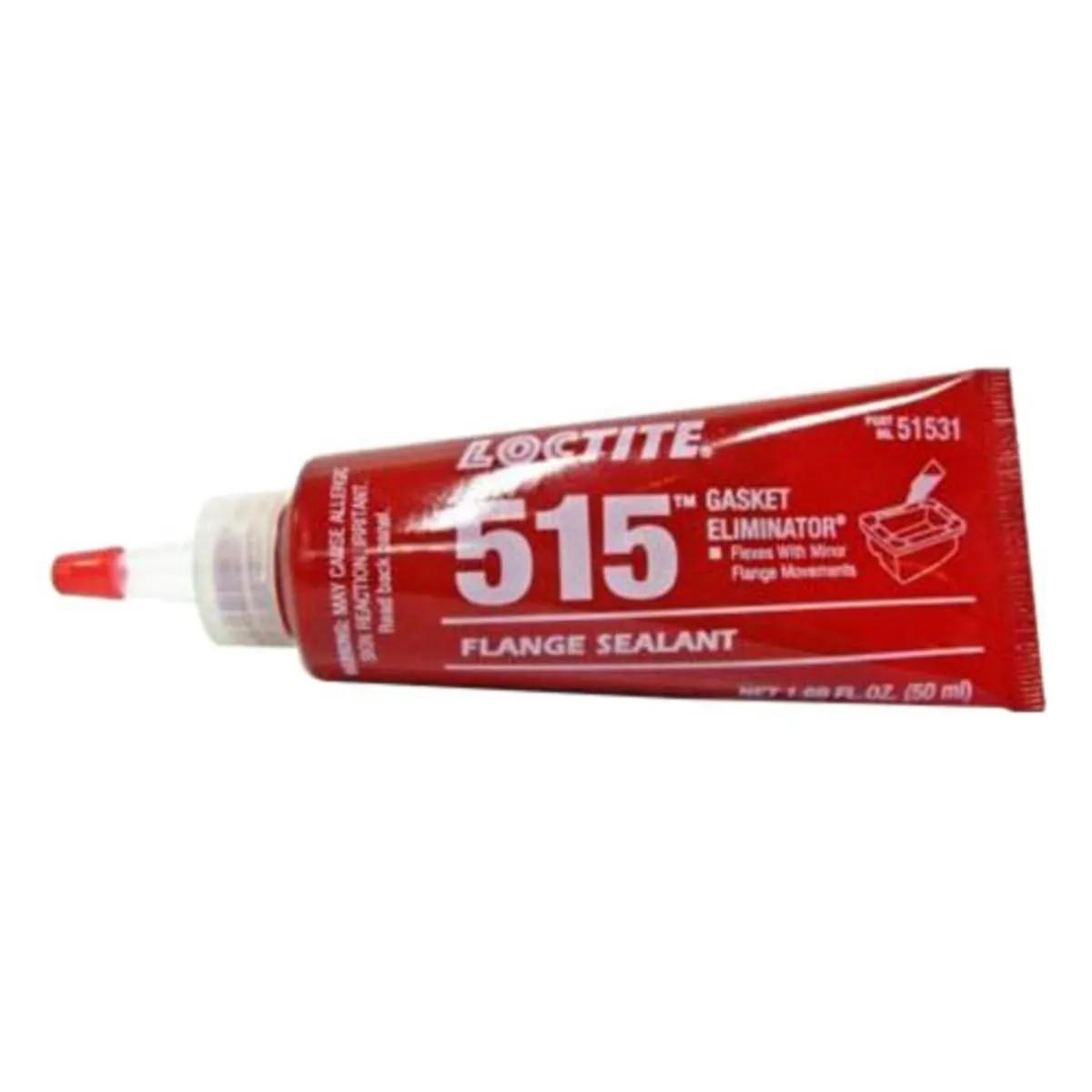 Loctite 515 cures when confined in the absence of air between close fitting metal surfaces. It seals close fitting joints between rigid metal faces and flanges and will flex with minor flange movements.