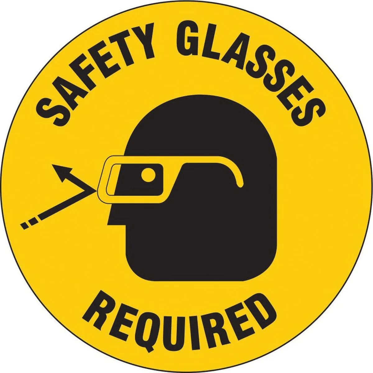Brady 97613 Circle Fire Floor Safety Sign, 17", SAFETY GLASSES REQUIRED (W/PICTO), Black/Yellow, 1/Pack
