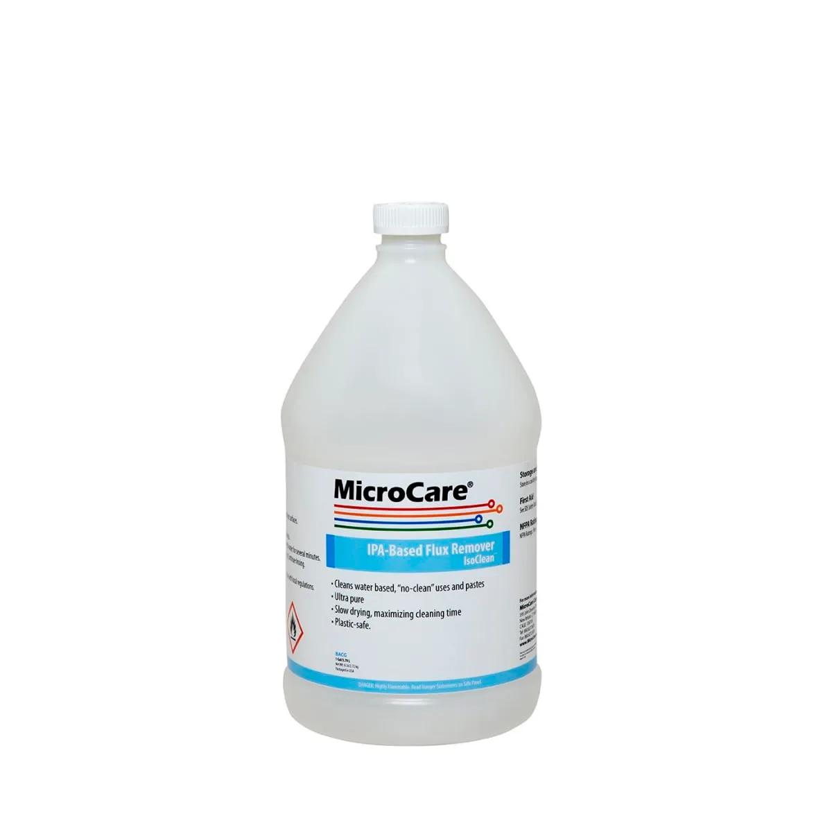 Pack1 Gallon Cube Container / 6 lbsThe IPA-Based Flux Remover - IsoClean is a mild, non-corrosive, ESD-safe circuit cleaner that quickly and easily removes fluxes, pastes, light oils and grease, as well as organic residues. It is effectively used as a circuit cleaner and stencil cleaner. MicroCare IPA-Based Flux Remover IsoClean is the strongest IPA-based cleaner on the market. While most IPA-based cleaners contain up to 30% water, this cleaner contains virtually no water and is undiluted by airborne humidity. 100% volatile, it evaporates cleanly with no rinsing required. Also available in Presaturated Wipes Strong & Lint-Free PN# MCC-BACW