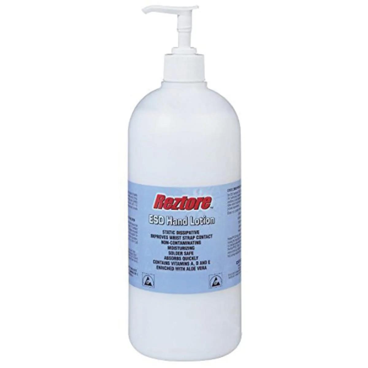 Desco's Industries Inc Reztore ESD hand lotion and Reztore clean hand lotion are specially formulated for use in the electronic manufacturing environment. Per ESD Handbook TR20.20 paragraph 5.3.2.4.3 test procedure, If the (wrist strap test) resistance is still too high, dry skin might be the problem. Dry skin conditions can be resolved by applying moisturizing lotion on the wrist and repeating the resistance test again. The moisturizing lotion should be one that is compatible with process requirements. The moisturizing hand lotion can be used to enhance the effectiveness of ESD control wrist straps, particularly for individuals with dry skin. It will absorb immediately into the skin without interfering with grip or dexterity. - The lotion is free of chemicals that may adversely affect solderability or cause corrosion of electronic components. Reztore Hand Lotion can also be used with ESD footwear. Per ESD Handbook TR20.20 section 5.3.3.5 Common Testing Problems "Occasionally, footwear may indicate a high resistance. Outside of the shoe material itself being a contributor to high resistance, the wearer's skin (if dry), heavy or insulative socks, or the absence of a sweat layer due to differences in temperature between the inner surfaces of the shoes and the wearer's feet.