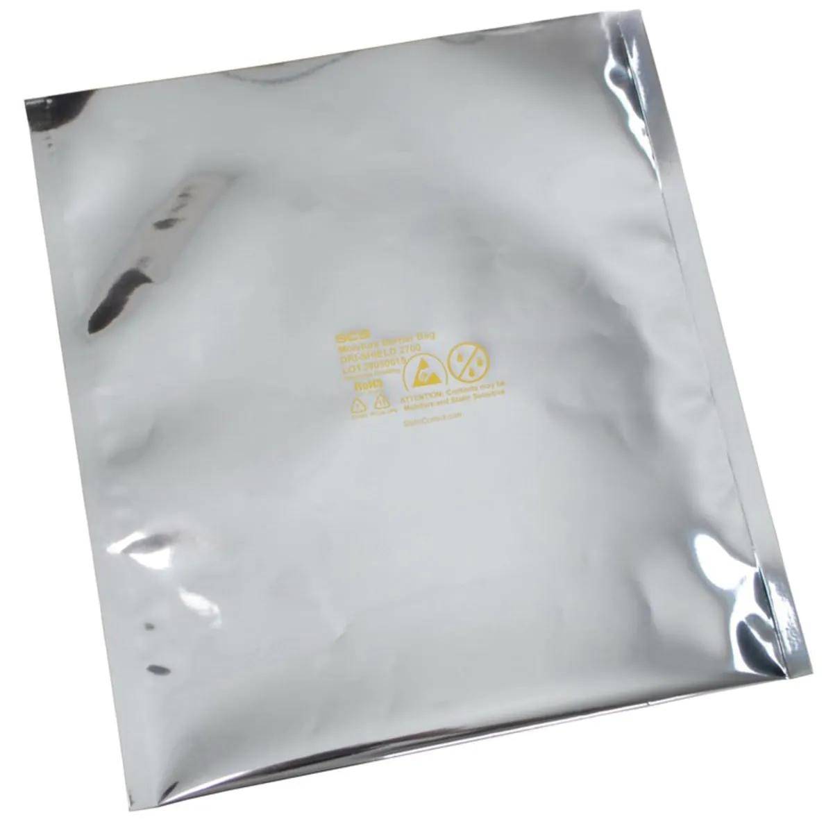 SCS Moisture Barrier Bags Dri-Shield 2700 are manufactured from a laminate of multiple layers of aluminized polyester and polyethylene. Polyester provides puncture resistance. Metal layers are intended to provide shielding of Electrostatic Discharge (ESD) and to help minimize the penetration of electric field. A stronger polyester layer helps to prevent sharp trays from puncturing the bag. NOTE: Many additional custom sizes are available. Please contact us for more information if your desired size is not listed. - This aluminized moisture barrier bag is designed to provide a static safe environment for sensitive electronic devices. The bags are heat sealable and suitable for vacuum packaging. Bags are printed with ESD and moisture warning symbols and a lot code for traceability. NOTE: Many additional custom sizes are available. Please contact us for more information if your desired size is not listed.