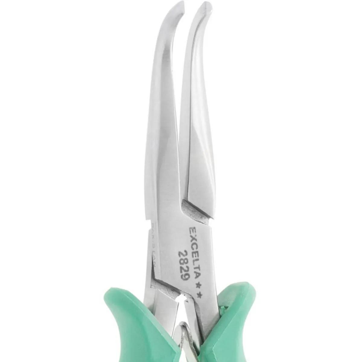 The 2829 medium 60° bent nose plier has an overall length is 5.75". It is made of stainless steel and feature dual leaf springs for smooth action. It features a ergonomically molded antimicrobial Anti-Static grip (10¹⁰ ohms/sq surface resistivity) with dual leaf springs.