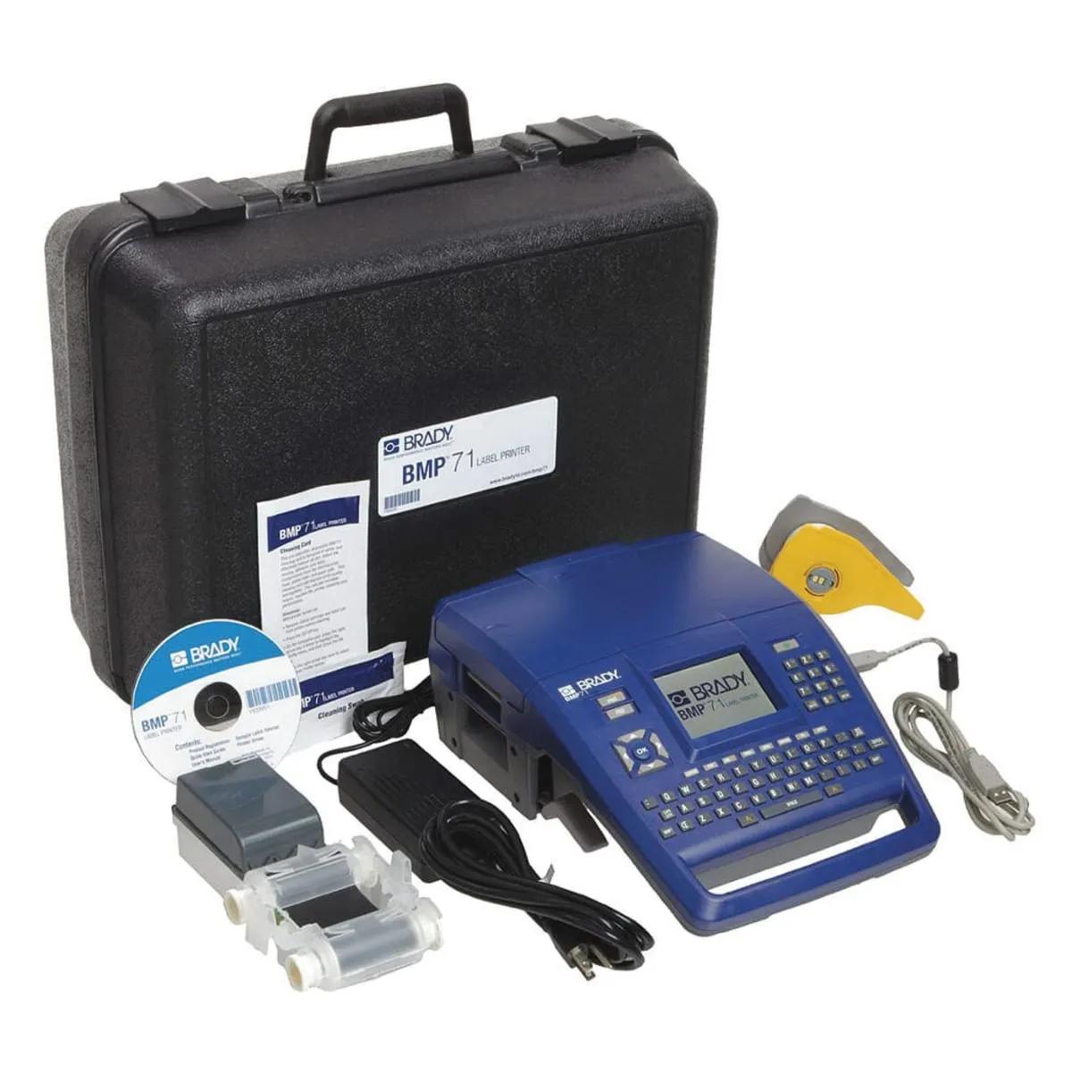 Pack1/PackThe BMP71 label printer is a portable printer with an impressive variety of features, label materials and design options. Whether you need 1/4 Inch self-laminating wire marker labels or 2 Inch wide vinyl pipe marker labels, this labeler can do it all. With a print speed of 1-1/2 Inch per second, the BMP71 label printer can help you make labels faster and more efficiently than before. Its top features include built-in label design wizards, storage space for over 100000 label files, and a large, full color graphical screen that shows you exactly what your label will look like. The BMP71 label printer had more than 400 different labels options for a variety of applications, including workplace safety labels, wire and cable markers, patch panel labels, die-cut labels, flags, tags, arc flash labels, visual workplace labels, barcode labels, equipment ID, labels for bins, racks and shelves, 5S labels, facility identification and more. Includes: BMP71 Printer, Hardsided Carrying Case, Battery Pack, AC Adapter/Battery Charger (Charges in approx 4 hr with Machine Off), USB Cable, TLS/HandiMark Label Roll Adapter, Cleaning Card and Swab, Product CD, Quick Start Guide, M71-R6000 Black Ribbon and M71-31-423 Die-Cut Labels