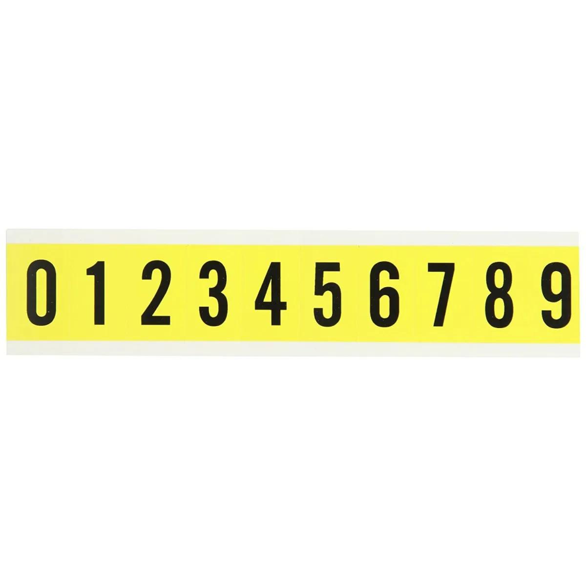 Labels can be permanent or repositionable, once applied, numbers and letters are there to stay - unless you want to change them. Made of B-498 plastic coated cloth with pressure-sensitive adhesive that sticks to any clean, dry surface. Choose from 8 different label sizes to best suit your needs. All 34 series labels are black on yellow. - To order, simply select the marker size needed for your application then substitute the number or letter you need for the asterisk following the catalog number. Use the abbreviation DSH to order dashes, ARO to order arrows and BLNK to order blanks. All sizes should be ordered by the card quantity desired.