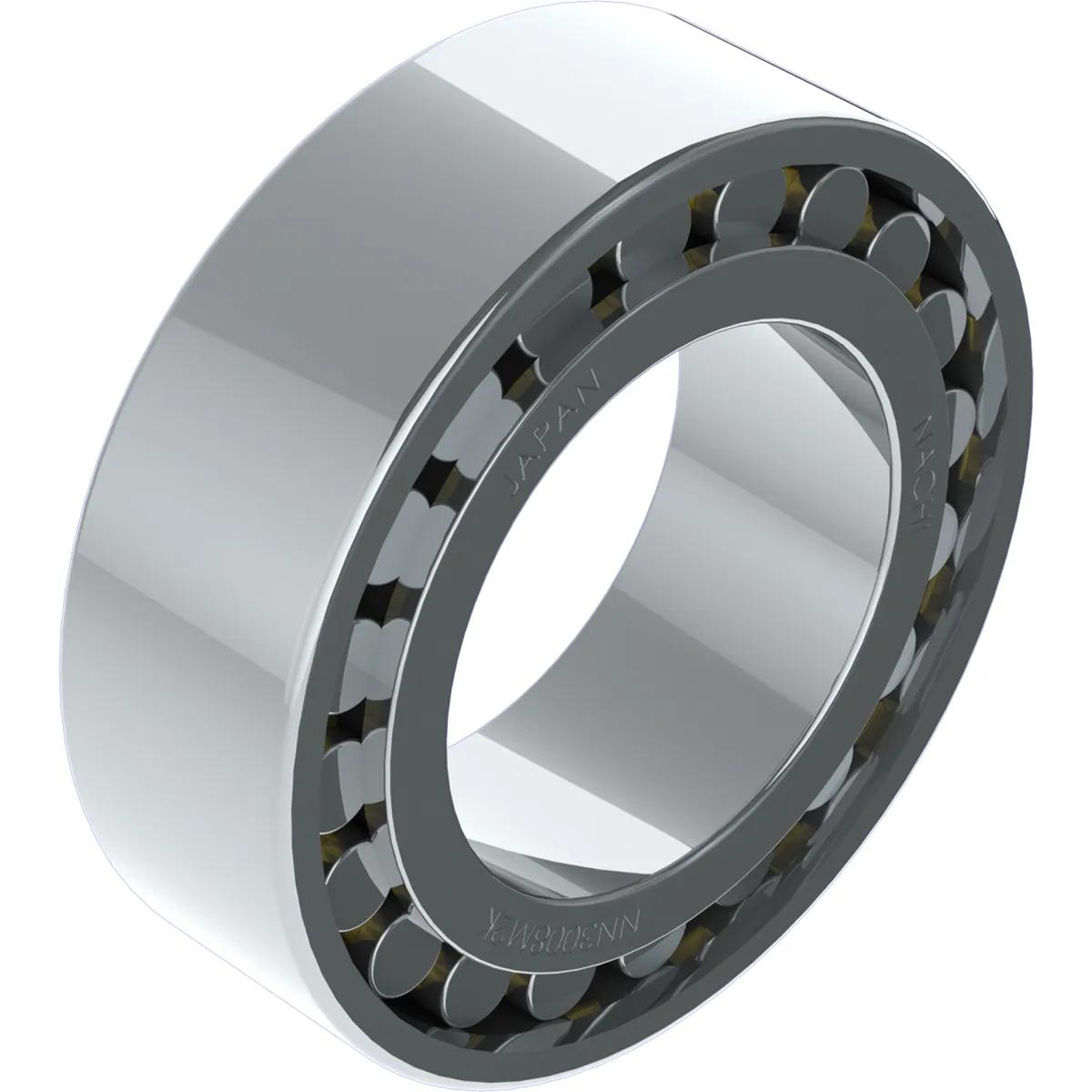 Precision Cylindrical Roller Bearing - Double Row with Tapered Bore. Precision Double-Row Cylindrical Roller Bearings utilize a modified cylindrical roller that provides line contact with the inner and outer ring raceways. They are suitable for high speeds and have a high radial load capacity. The rollers are guided by ribs on the inner ring. These bearings are not be able to accept any axial loading, however they will allow some axial movement. The inner and outer rings are separable which may aid in the assembly/disassembly of components. The ‘NN’ Type bearings have three shoulders on the inner ring that retains the rollers and cage. The outer ring has no shoulders. They have a tapered bore and machined brass cage. Radial clearance of tapered-bore bearings can be adjusted during the mounting process. These bearings have high radial rigidity and are used primarily for high-speed, high-accuracy applications such as; main spindle support for lathes, milling machines and machining centers.