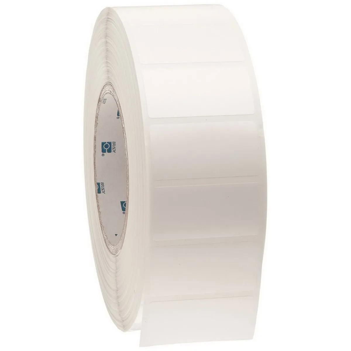 The Brady's thermal transfer printer 1 row label roll. These items come in a variety of shapes and sizes to accommodate many situations. One of the important components to selecting the right product is the proper label and adhesive material. This continuous thermal transfer printer label roll uses polyester for the label material and ultra-aggressive rubber-based as the adhesive. - Brady printable white polyester 1 row labels are made with a gloss finish and an ultra-aggressive permanent adhesive. Brady B-483 polyester labels are designed for high adhesion to textured metals and low surface energy plastics and adhere well to powder-coated surfaces.