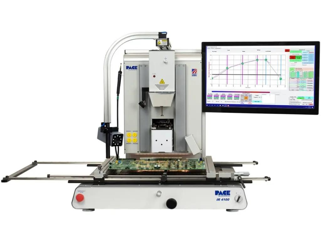 The PACE IR 4100 Infrared BGA and SMD Rework Station delivers precise, non-contact infrared heating for the reflow and repair of BGAs, SMDs, and PCBs. With programmable profiles, closed-loop temperature control, and auto-cooling features, it provides safe, reliable, and repeatable rework for high-value electronic assemblies and prototypes.