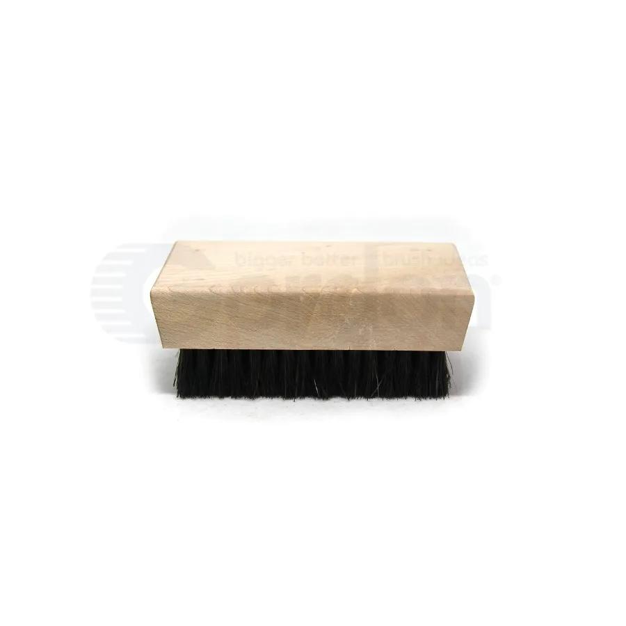 Small easy-grip block brush with anti-static horse hair bristle, and a static-neutral hardwood block handle. This multipurpose brush has a 10 x 16 row configuration, with a 3/4" trim, and a brush face of 3-7/8" x 2-1/4". Wood block handle is 4-1/4" x 2-1/2". Traditionally used by professional printers and graphic artists