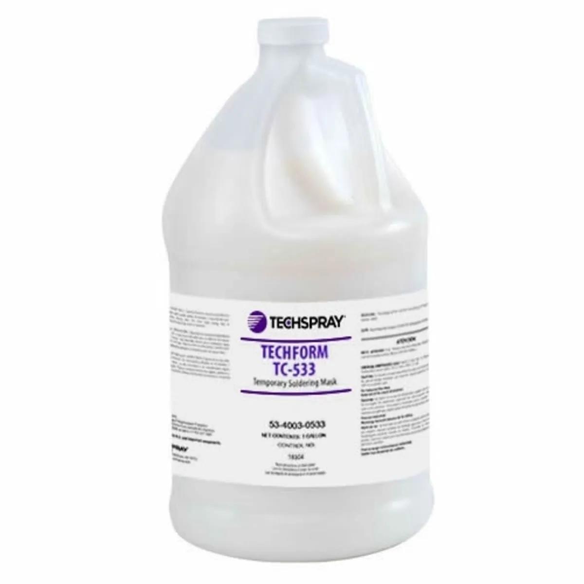 The Kester TC-533 is a high temperature flexible solder masking compound specially formulated of natural latex rubber. The latex has been chemically enhanced so that it is heat stable and tacky enough to be applied to those areas of circuit boards, which require masking during a wave soldering process. The Kester TC-533 effectively masks and protects the board from the time it is manufactured, through all assembly and flow operations. - The Kester TC-533 can remain on the protected areas of the board until ready for test and then, with only a mild pulling action by hand or tweezer-like tools, can be easily peeled away without leaving a residue. The Kester TC-533 prevents solder from flowing into contacts, terminals, screw heads and plated through holes.