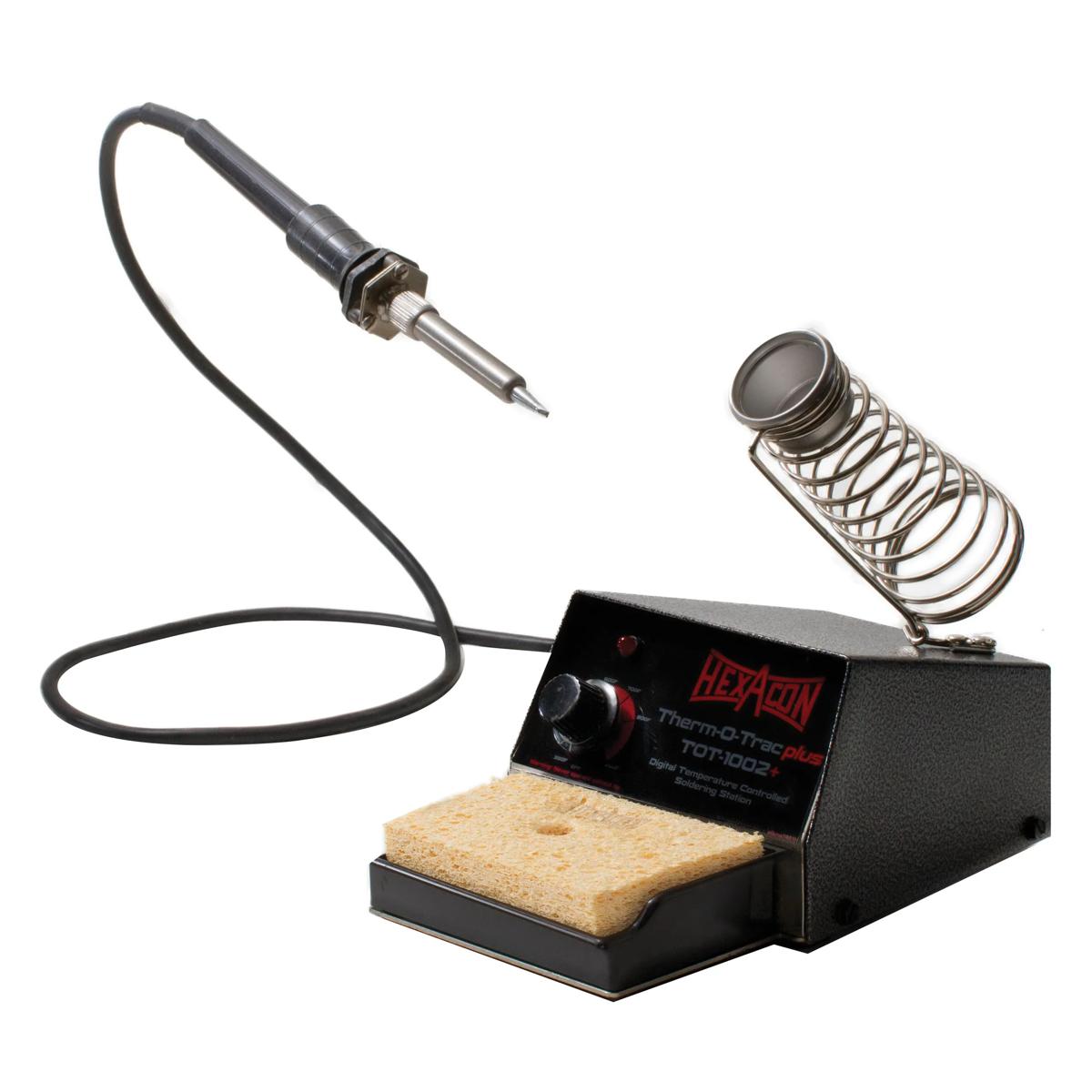 Therm-O-Trac + Soldering Stations are the best available for high reliability applications. They exceed all industry standards and MIL specs including the performance requirements of MIL-STD-2000A and ANSI/JSTD001; the ESD requirements of MIL-STD-1686; and the EMI and RFI emission criteria of MIL-STD-461A/ 462A. With outstanding performance, Therm-O-Trac + is also the leading station for commercial applications requiring high reliability and accurate temperature control. - TOT-1002+ is the most popular station in the Thermo-O-Trac family. This adjustable unit can hold any temperature within 350ºF-850ºF and is perfect for soldering applications with wide range of temperature requirements.