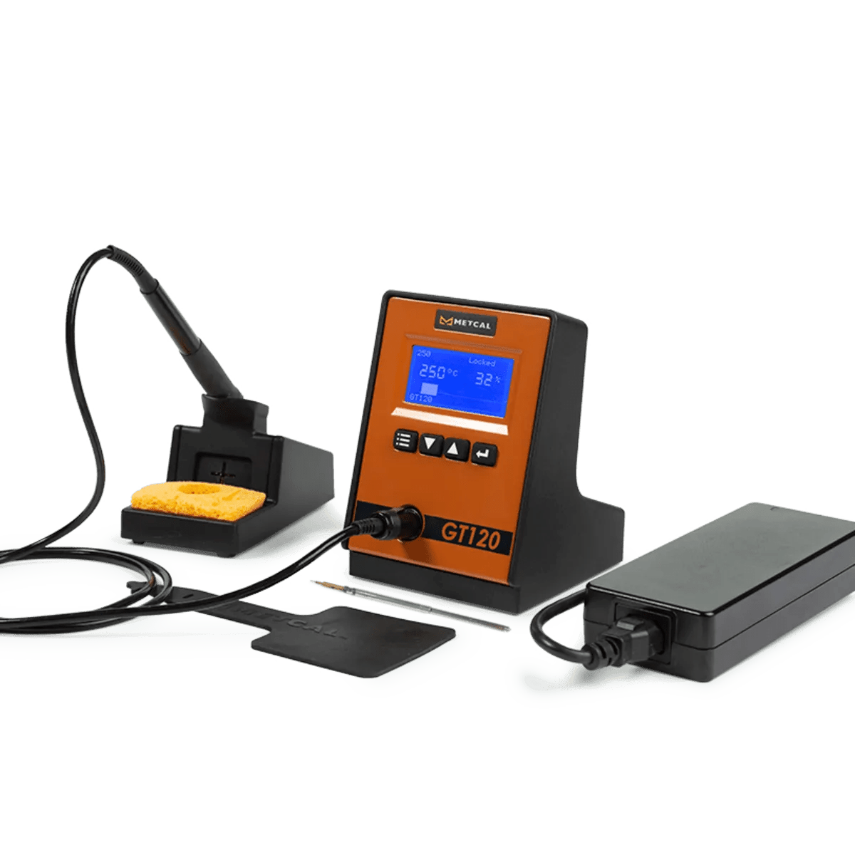 GT120 is a single port soldering station with best in class performance, 120 watts of Power, and ideal for single iron applications on the production line. The GT120 is supplied with a replaceable 120W external Power supply allowing for a more compact design to save space on the bench and improve the quality and life of the system.