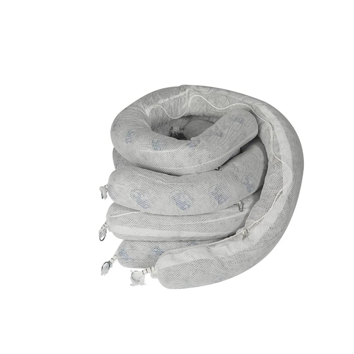 Paquete4/CaseA chemical sorbent boom with a dia of 20 cm that is used to absorb and contain chemicals, hazardous liquids as well as oils and water-based fluids. Strong, durable outer sleeve keeps the absorbent material intact within the boom. Inner rope provides strength when deploying and retrieving the boom. 4 staple clips at critical stress area add strength and prevent the boom from splitting during retrieval. Metal clips and rings allow linking of multiple booms.