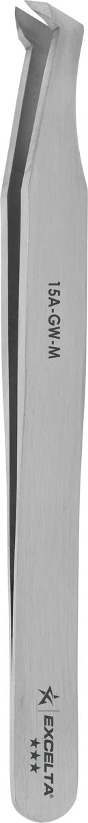 The 15A-GW-M 70° angulated tip cutting tweezer is ideal for general purpose cutting of soft wire up to 0.010". This tool is considered a tip cutter in that the blades meet most predominately at the tip. All of the force applied to the tweezer gets transferred to the tips. The 'M' signifies that the tool is MEDICAL GRADE.