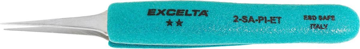 The 2-SA-PI-ET straight tapered fine precision pointed tweezer offers better visibility and works well under low magnification. It is made of anti-magnetic stainless steel. The overall length is 5.25". It features our Ergo-Tweeze® soft cushioned Anti-Static grips (10¹⁰ ohms/sq surface resistivity), which also protect the user from heat.