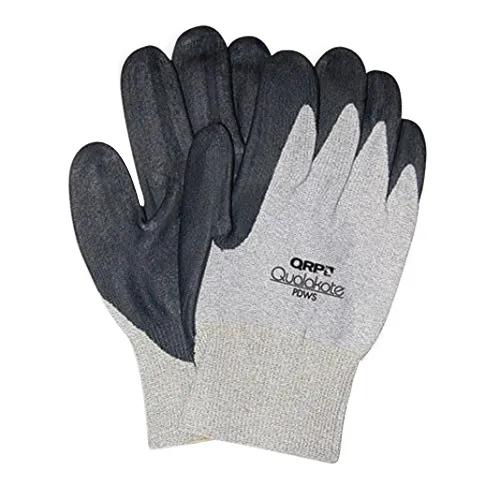 Pack12 Pair/PackThe QRP PDWS-L Qualakote ESD wave solder glove is knit from nylon carbon yarn and features a nitrile anti-static dip palm for dependable grip. Heat protection, yet thin for maximum dexterity. Seamless knit for greater comfort. Nitrile anti-static palm dip for excellent grip and protection from snags. Open knit back allows air-flow to hand, insuring greater comfort. - Highly flexible for dexterity, ergonomic fit. Machine washable for repeated use. Nitrile foamed palm dip for extra toughness. Protects hands from wave solder heat up to 200 °F while allowing maximum flexibility.