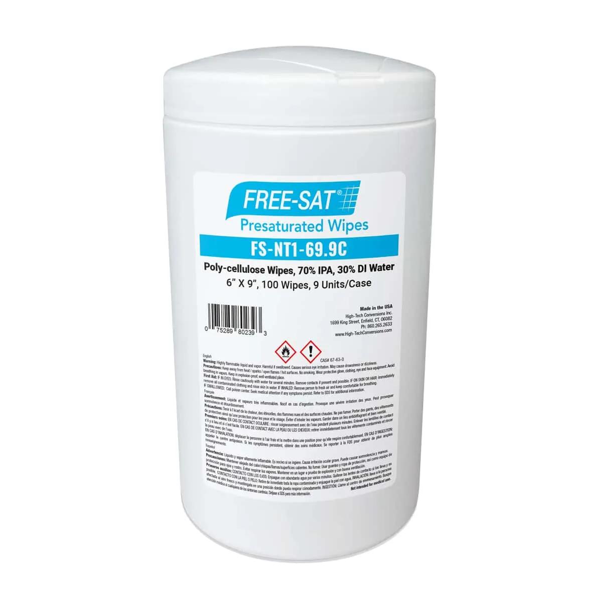 Designed for precision contamination control, these wipes cater to the stringent needs of the high-tech research and manufacturing sectors that demand the utmost cleanliness with added convenience of a canister wipe. They are ideal for use in ISO Class 6 (Class 1000) Cleanrooms, and can be used in ISO Class 5 (Class 100) Cleanrooms. These presaturated canister wipes are made from a hydroentangled nonwoven material composed of 45% polyester and 55% cellulose. They are tough, abrasion resistant, absorbent, and virtually free of particle generation.