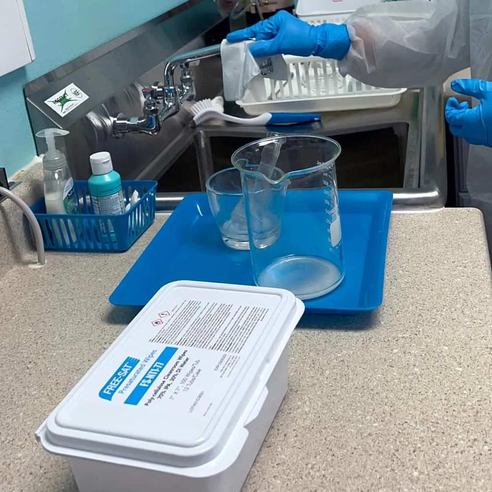 FREE-SAT 7″ x 7″ 70% IPA / 30% DI Water – These wipes contain four clean-cut edges as opposed to having long, stringy loose fibers on two sides due to perforating. FREE-SAT IPA Pre-Saturated Wipers are packaged in convenient containers which allow the user to open, remove a wipe, and close the container with one hand. This enables the user to hold an item with the other hand. Because the block of 100 isopropyl wipes are pre-saturated in tough sealed nylon bags within the container, shelf life is dramatically increased. The fabric itself, NOVA-TECH 1000, is a material that is tough, abrasion resistant and virtually free of particle generation and extractable chemical. It is comprised of a synergistic blend of virgin polyester and cellulose that is hydro-entangled into a uniform tough fabric. These unique features make NOVA-TECH 100 a very effective fabric for isopropyl wipes.