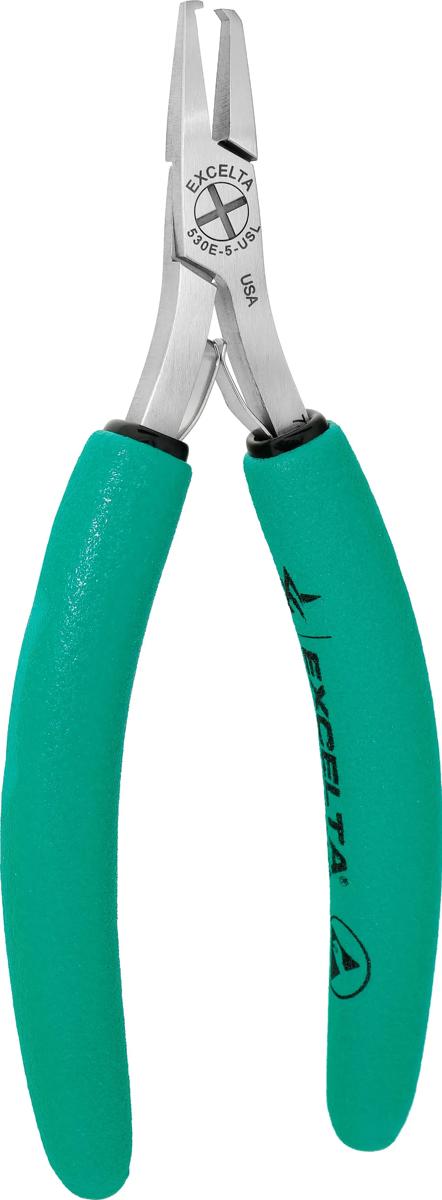 The 530E-5-USL-040 6" narrow anti-shock shear cutter reduces shock on delicate components and solder connections. The "Stand-Off" keeps the cutting blade from cutting into the solder connections. The tip width is .090". It's recommended cutting capacity is 22 AWG (.25" soft wire). It features a soft cushioned ergonomic Anti-Static grip (10¹⁰ ohms/sq surface resistivity) with dual leaf springs.