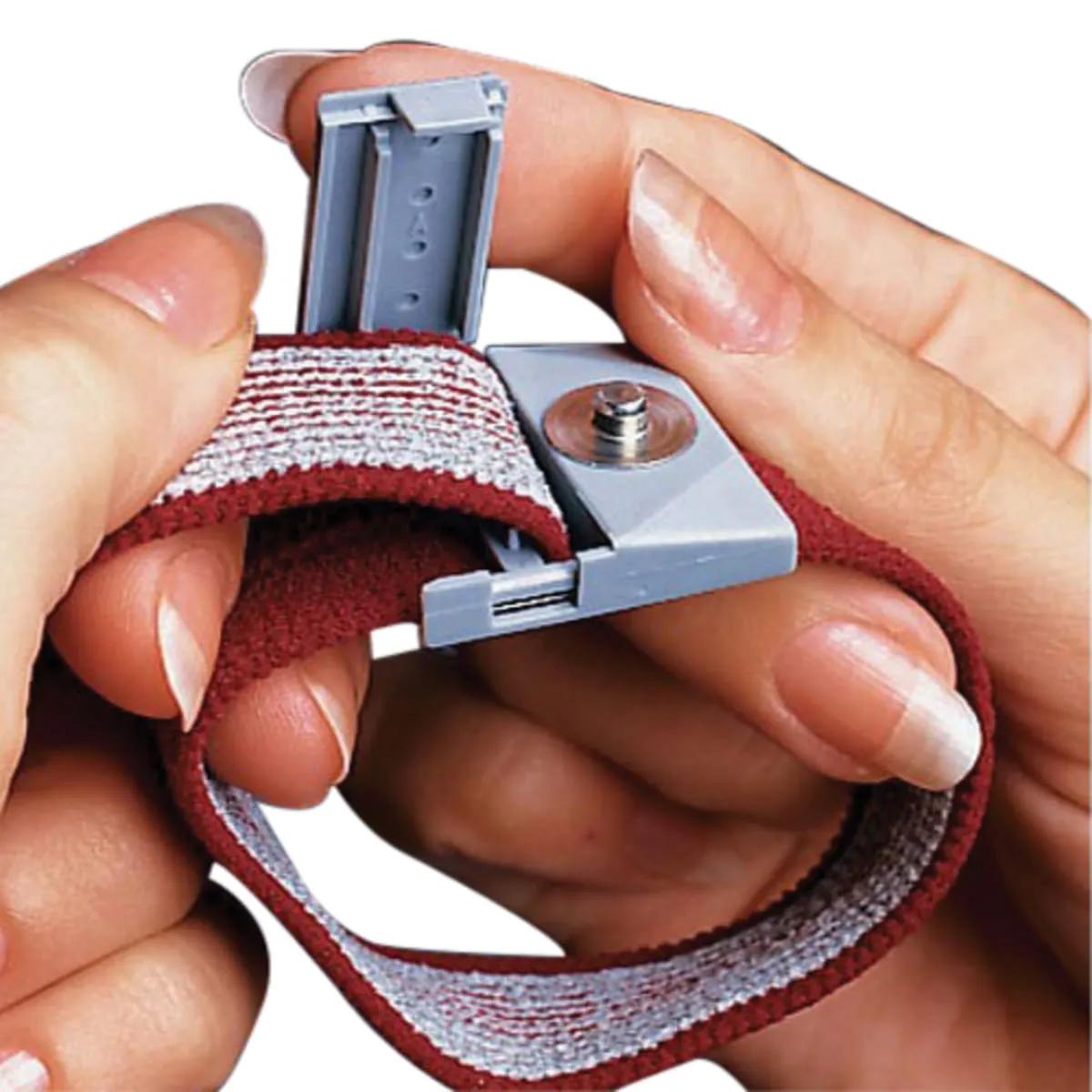 The adjustable wrist strap with cord provides a cost-effective method of grounding personnel and are the front line of defense in all static control processes. Provide a comfortable, custom fit with these adjustable wrist straps. One size adjusts to any size wrist to provide reliable, 360 deg protection. These wrist straps feature a band made of a silver plated, monofilament, continuous thread woven together with elastic nylon to assure full conductivity, comfort and reliability, while providing rapid and continuous drain of static charge. - Adjustability also simplifies ordering procedures and inventory control by eliminating the need to order and stock several band sizes. A 1 megohm resistor is built into the ground cord. All wrist strap set with cord include an alligator clip, which fits over the installed banana jack on the ground cord, to provide an alternative ground attachment method.
